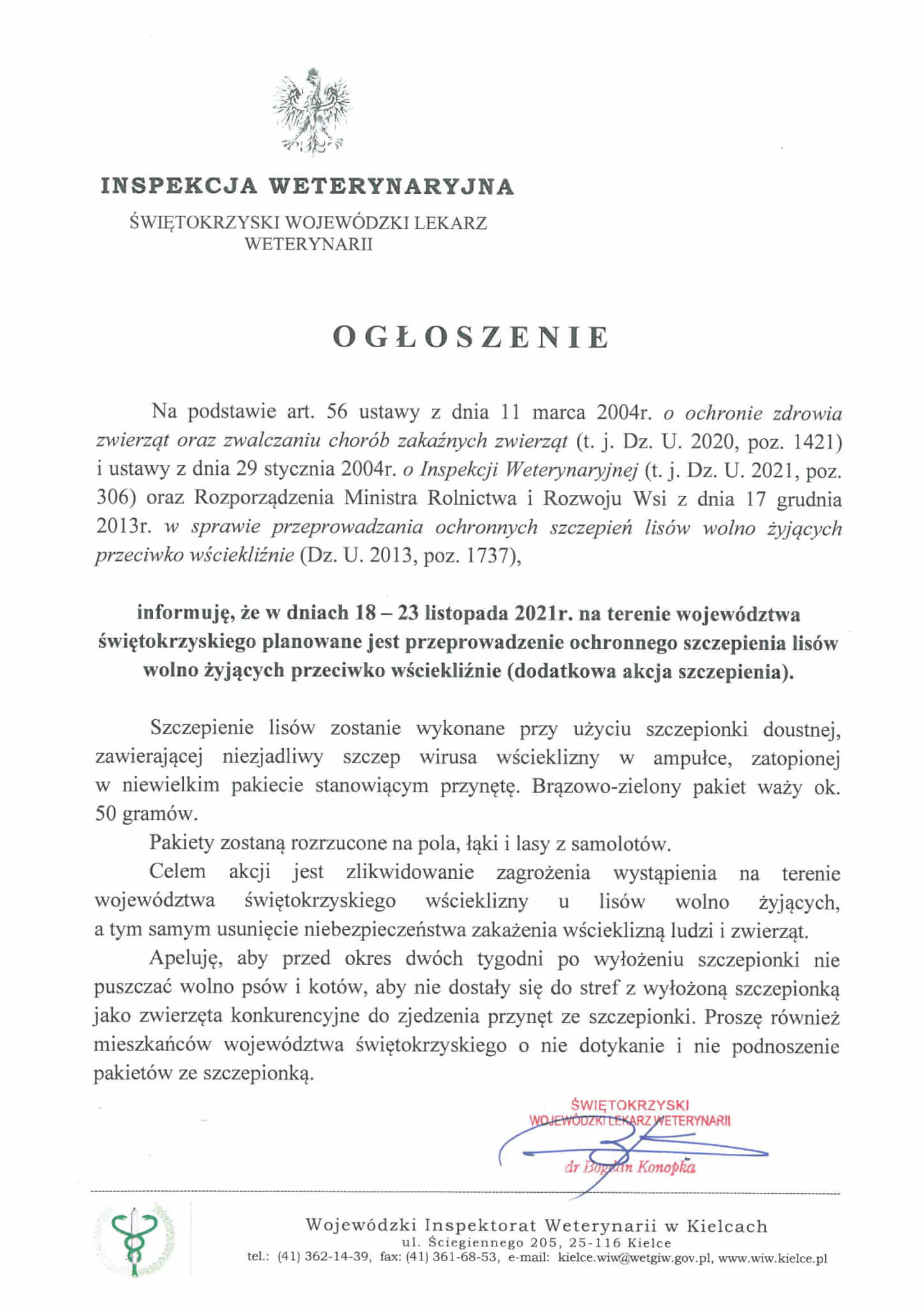 Powiatowy Lekarz Weterynarii w Staszowie mając na celu ujednolicenie i usprawnienie przemieszczania świń oraz prowadzenia uboju świń na użytek własny w tzw. obszarze objętym ograniczeniami III (strefa czerwona) oraz obszarze zapowietrzonym i zagrożonym, wyznaczonym w związku z wystąpieniem ognisk ASF informuje, co następuje: