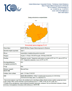 OSTRZEŻENIA METEOROLOGICZNE ZBIORCZO NR 62