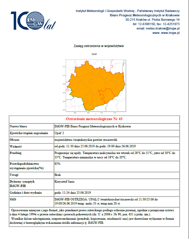 OSTRZEŻENIA METEOROLOGICZNE ZBIORCZO NR 62
