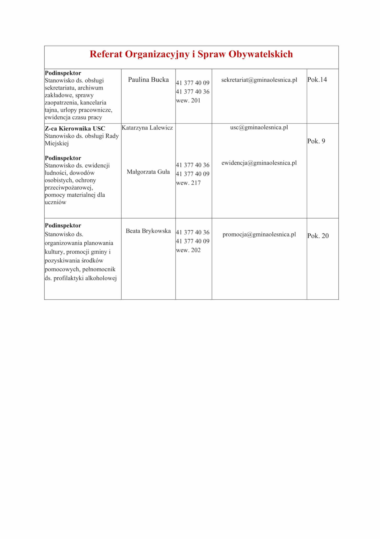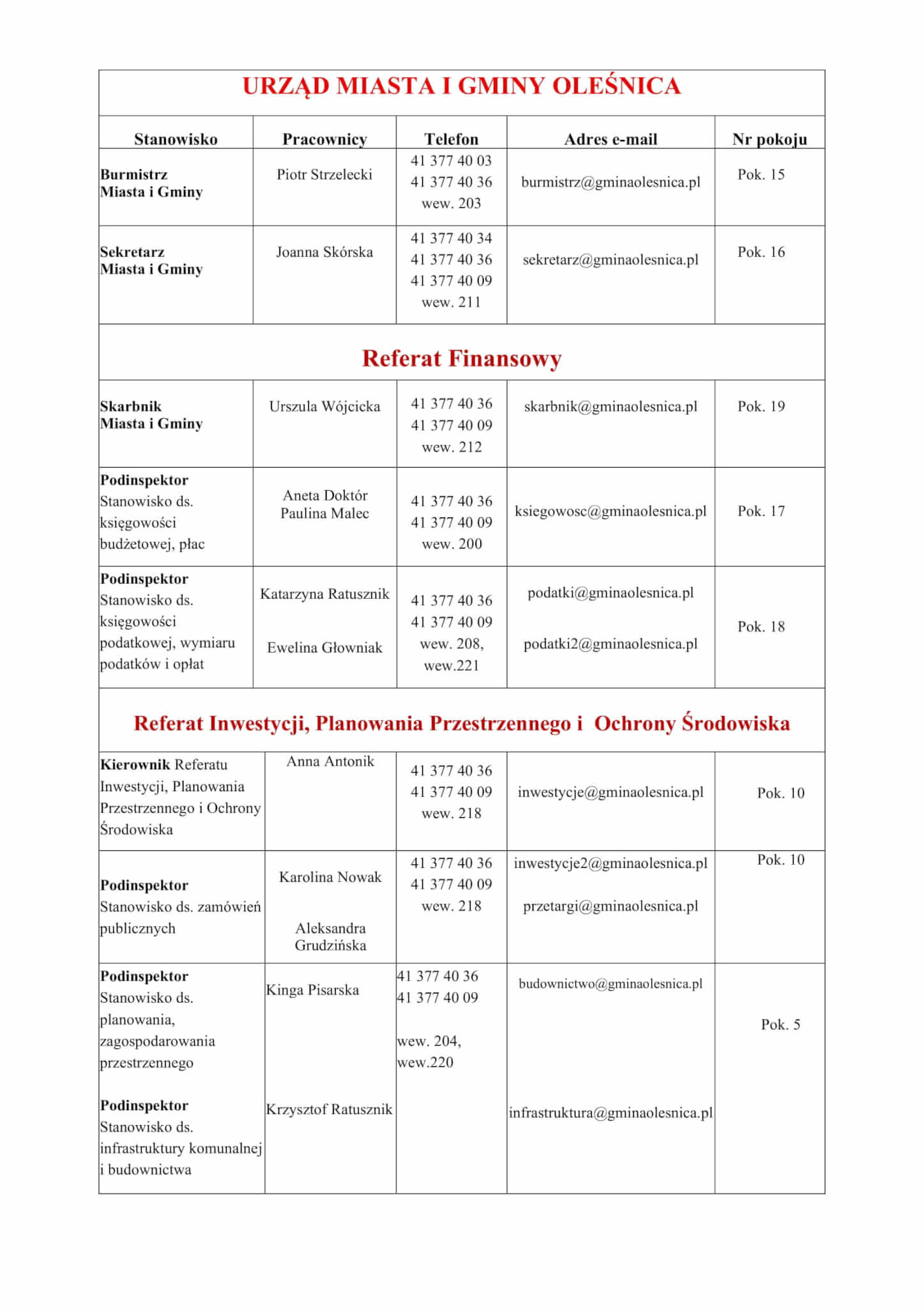 Organizacja Urzędu Miasta i Gminy Oleśnica